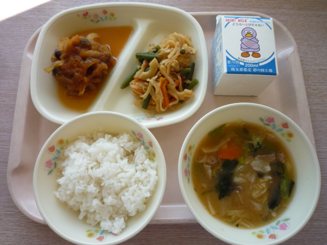 (献立) 和風ハンバーグ 豚キムチスープ 切り干し大根の炒り煮 ご飯 牛乳 (コメント) 見た目はそうでもありませんが、キムチスープだけあって ピリッときます。 キムチは発汗作用だけでなく、ビフィズス菌を増やし、 腸内環境を整えてくれるそうです。 |