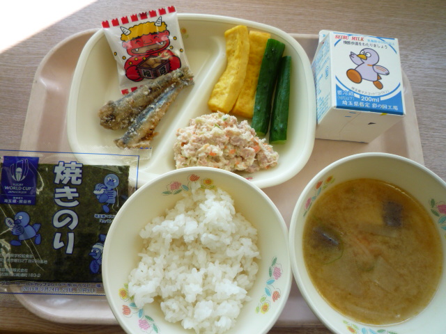 (献立) 手巻き寿司 いわしからあげ みそけんちん汁 福豆 牛乳 (コメント) 手巻き寿司は、恵方巻に見立てています。今年は、西南西を向 いていただきましょう。 今日の給食、具が結構多いです。 さて、豆は年の数、あるいは年の数+1個を食べると、その数 だけ福が宿ると言われています。 ところで、豆を投げて「鬼を退治しましょう」という教室も あると思います。今日は許されますね。 |