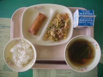 8月31日(金)の給食☆本日の献立☆ 今日から給食が始まりました。暑さに負けないように、苦いゴーヤチャンプルーです。運動会の練習に弾みがつくといいですね。 2学期も、安全・安心で、おいしい給食が提供できるよう努力してまいります。 |