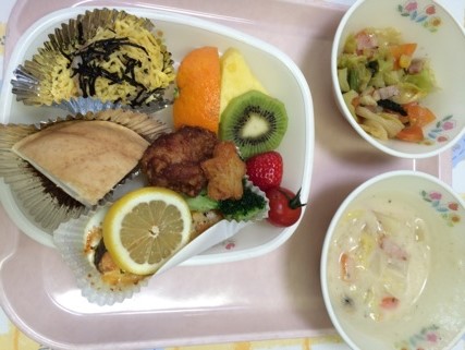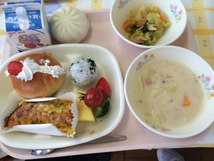いつもの給食とは違い、いろいろなメニューが並びました。