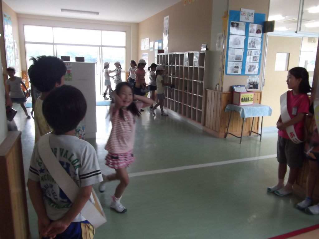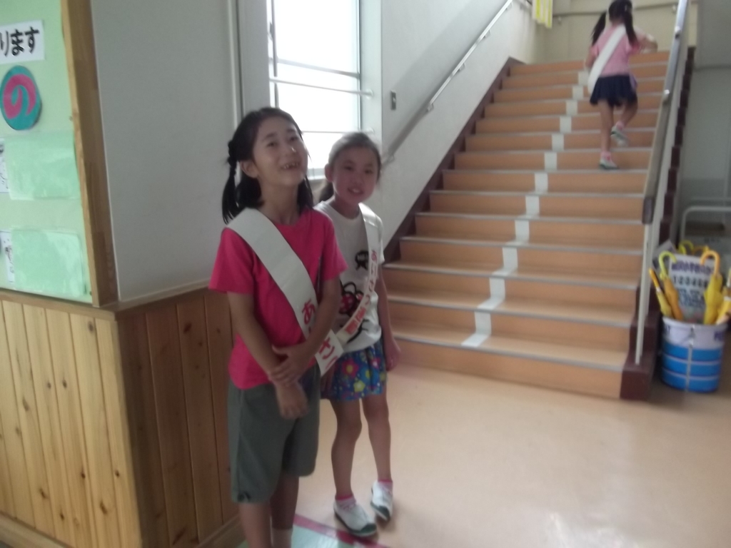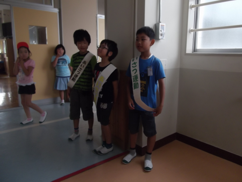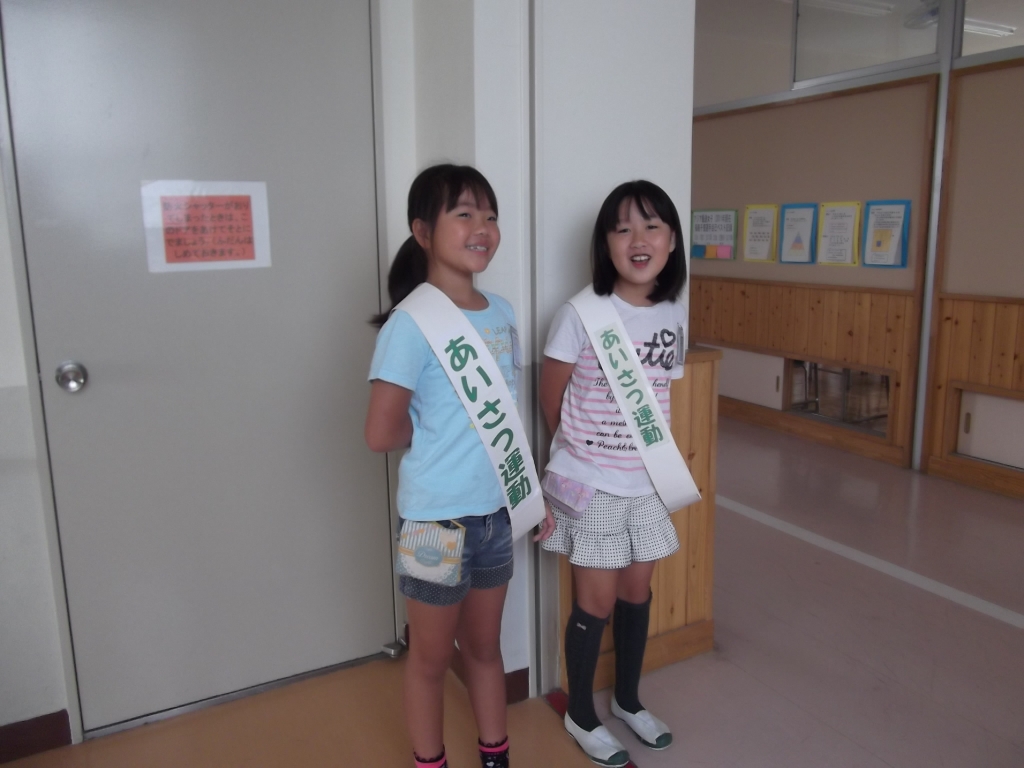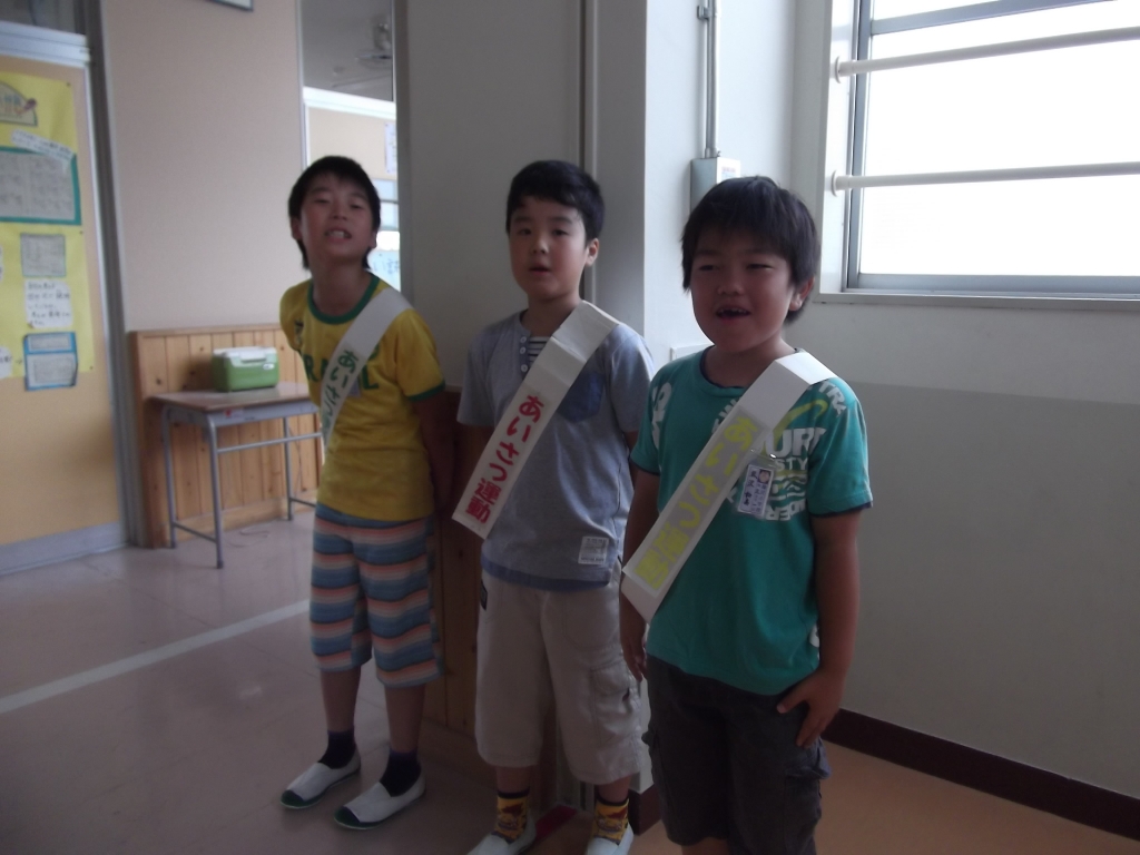 児童会の取り組みで、あいさつ運動をすることになりました。