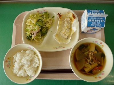 2月21日(水)の給食☆本日の献立☆ ご飯、鱈のマヨネーズ焼、たくあんサラダ、沢煮椀 たくあんサラダが、たくあんの食感と甘さで、サラダというよりおかずの一品としても十分通用しました。 |