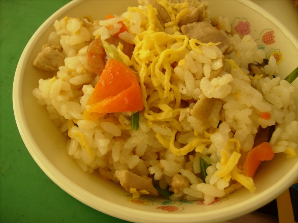 ちらし寿司には、給食室で煮た具を混ぜ込みました。