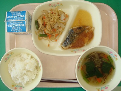 2月16日(木)の給食☆本日の献立☆ ご飯、揚げサバのおろしかけ、切り干し大根の炒り煮、もずくスープ 揚げサバのおろしかけ。おろしでしっとり、まわりはカリッと、中はふっくらと…味でも食感でも楽しめて、とてもおいしかったです。 |