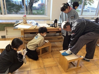 4年生は、昨年度もお世話になっていて、今年で2回目ののこぎり体験でした。