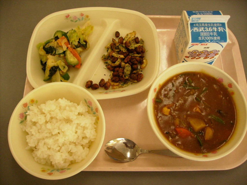 ☆今日の献立☆  牛乳、ごはん、小江戸カレー 大豆とごぼうのカリカリあげ 温野菜味噌ドレッシング 今日は、さつまいもとほうれん草が入った 小江戸カレーでした。小江戸とは、今の川越市のことを言い、 川越はさつまいもが特産物なので、そのさつまいもを使った カレーなので、小江戸カレーという名前がついています。 さつまいものほろっとした口溶けのよい甘口のカレーに 仕上がりました。ほうれん草も入り、栄養のバランスもよくなります。
