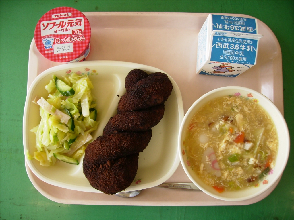 3月8日の給食~ココア揚げパン