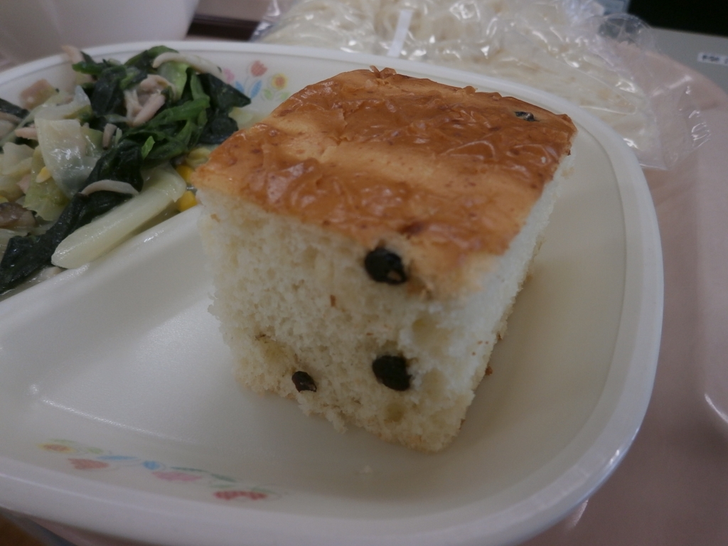 今日のパンケーキはヨーグルト、ブルーベリー、 粉チーズが入りました。 10月には目の愛護デーがあるので、目にいいと言われている ブルーベリーを使ったパンケーキを提供しました。 ヨーグルトのほのかな酸味がしていておいしかったです。