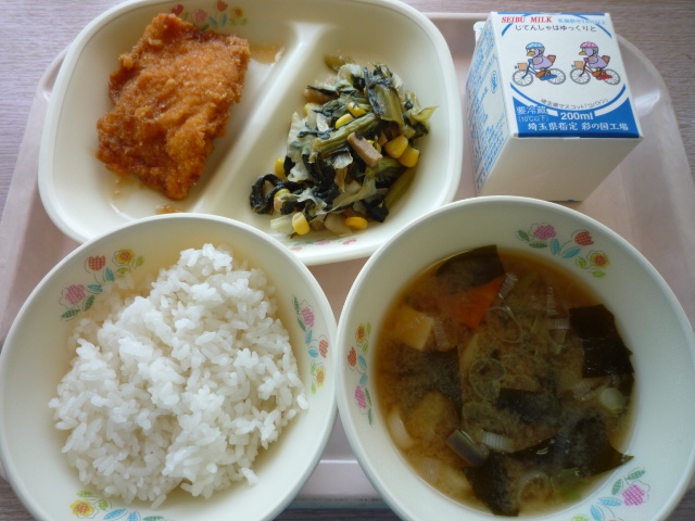 (献立) かつ丼 青菜とあぶらあげの煮びたし みそ汁 牛乳 (コメント) 鶏肉のかつ丼はヘルシーと言っていいでしょう。 つゆもご飯にかけていただきました。 みそ汁にはなすも入っていました。 |