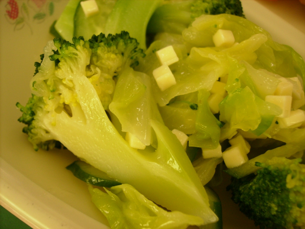 グリーンサラダには、小さなさいころチーズが入りました。