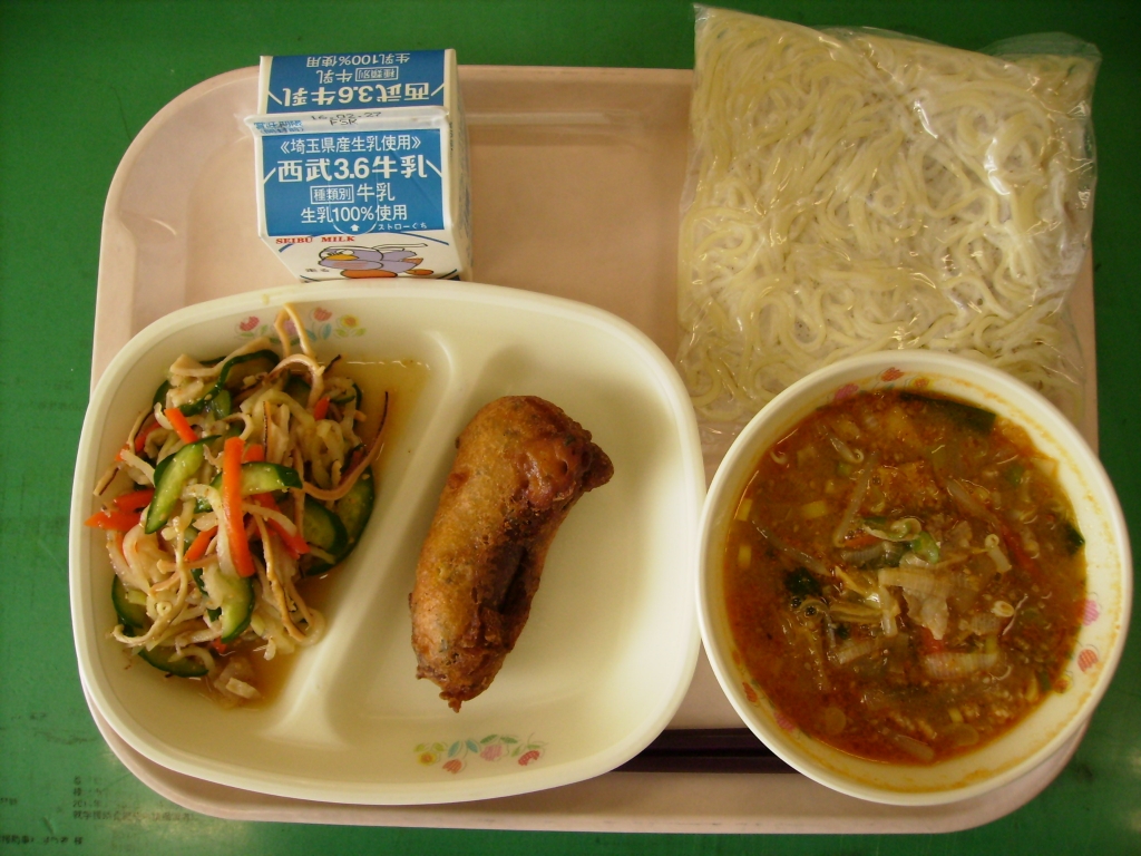 今日は全クラス完食しました♪ キムチ入りごま味噌ラーメンはピリ辛で 食が進むメニューでした。この日の給食を 楽しみにしていてくれていた児童もいました。 ウィンナ-の香味揚げは、衣にカレー粉とひじきが入りました。 かみかみあえも、児童に人気のメニューです。 よく噛んで食べたでしょうか?