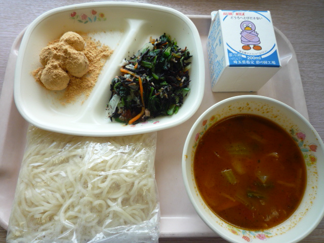 (献立)トマトラーメン ほうれん草とひじきのサラダ