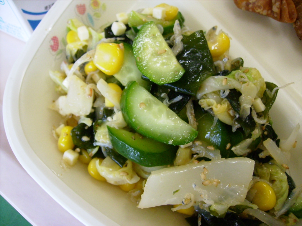 今日の、サラダは新メニューでした。ジャコ、チーズ、